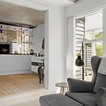 In an equipped kitchen at the Lihme property, there are an electric kettle and a fridge.